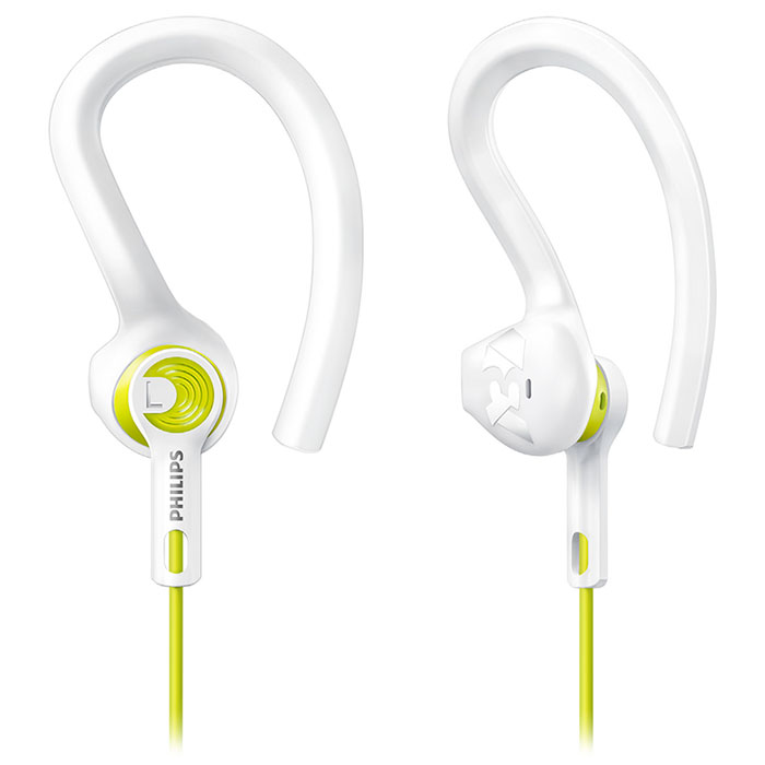 ყურსასმენები ყურსასმენი / SHQ1400LF/00 Philips Sports headphones Ear-hook, Lime Yellow/Whiteსიხშირე: 15 - 22 000 Hz