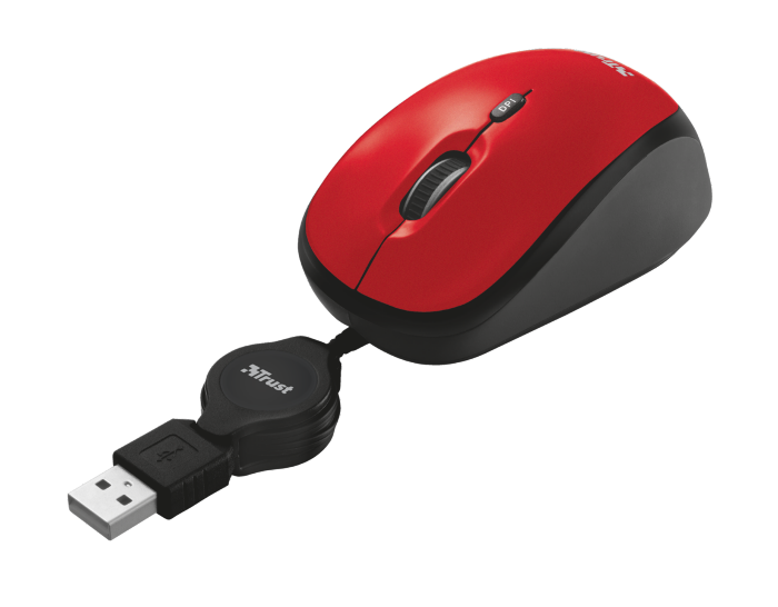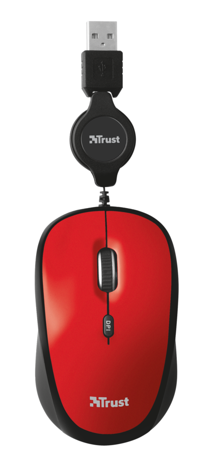 მაუსები მაუსი / TRUST YVI RETRACTABLE MOUSE - RED (21053)